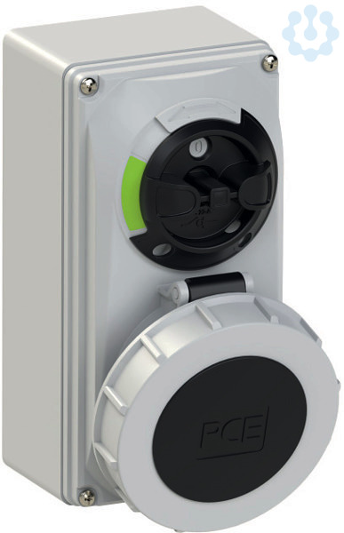 CEE-Steckdose abschaltbar kompakt 32A 5p 7h IP66/IP67; Gehäusematerial: PA6 + PC/ABS; Nennstrom: 32A; Polzahl: 5 (3P+N+PE); Uhrzeit-Stellung: 7h; Nennspannung/Frequenz: 277/480V~ - 288/500V~ / 50+60Hz; Kontakte: Messing vernickelt; Anschlusstechnik: Schraubklemmen; Wanddose, mechanisch verriegelt; Schalter: EIN/AUS PCE-Merz ML0; EN 60947-3; AC22A, 10kA; Schutzart: IP66/IP67