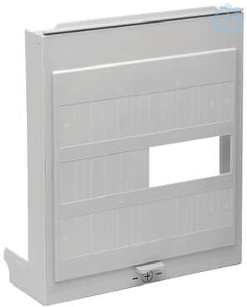 Abdeckung 300 x 250 mm, mit Ausschnitt für Haupt-Sicherungsautomat S751 3-polig, für den unteren Anschlussraum im Zählerfeld plombierbar.