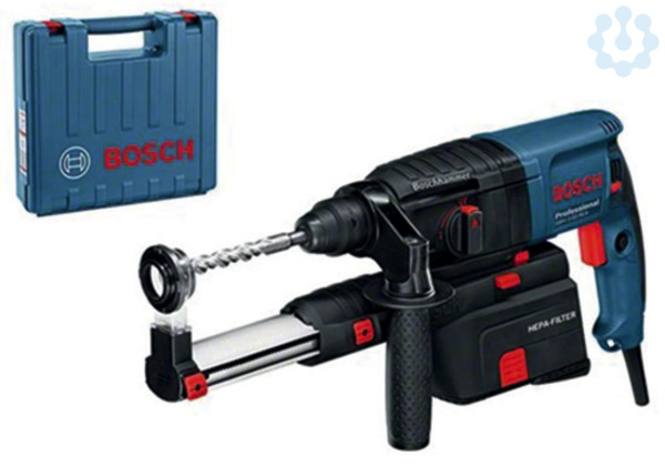 Absaughammer mit SDS plus GBH 2-23 REA, Die kompakteste Lösung für staubfreies Bohren, Integrierte, abnehmbare Absaugeinheit für sauberes, staubfreies Arbeiten, Komfortables Arbeiten auch über Kopf durch besonders kompakte Bauweise, Bohrkronenadapter-Set zum Absaugen bei Arbeiten mit Hohlbohrkronen (bis 68 mm) – auch mit externem Sauger verwendbar, Maschinentuch; Handwerkerkoffer; Absaugeinheit; Zusatzgriff (ET-Nr. 1 619 P06 104); 5 x Dichtungsring (ET-Nr. 1 619 P04 548)