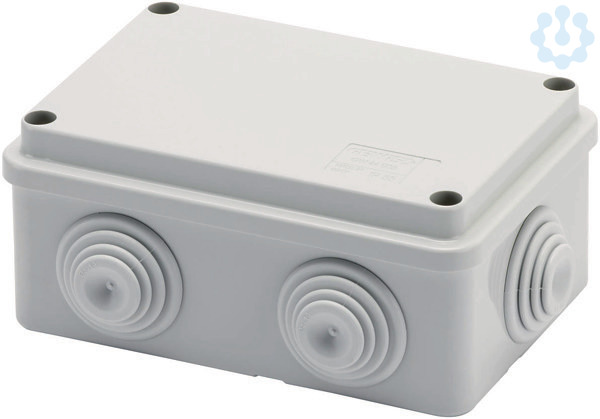Abzweigkasten eckig, mit Kabeltuellen, geschlossenem flachem Schraubdeckel mit Edelstahlschrauben.