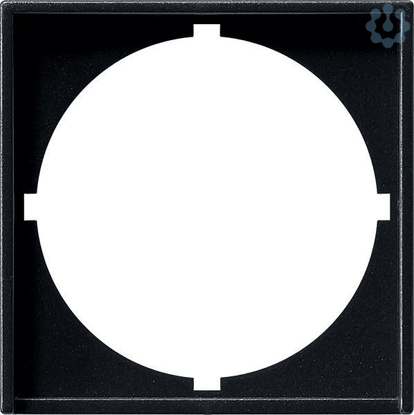 Adapterrahmen mit rundem Ausschnitt für Geräte mit Abdeckung (50 x 50 mm) Schwarz matt Merkmale: Mit dem Adapterrahmen und Abdeckrahmen (1- bis 5fach) lassen sich Fremdgeräte mit quadratischer Zentralplatte in das Schalterprogramm integrieren.