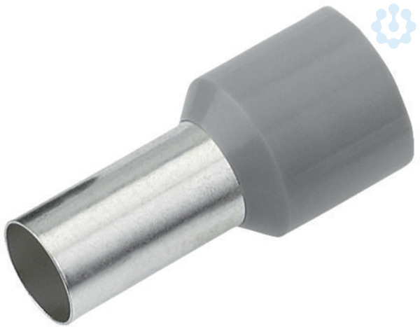 Isolierte Aderendhülsen, Abmessungen nach DIN 46228, Teil 4, Farbreihe 1. Technische Daten; Werkstoff: Cu-ETP nach DIN EN 13600; Oberfläche: galvanisch verzinnt; Isolation Polypropylen; Temperaturbeständigkeit -35°C bis +105°C; Zum mühelosen Aufstecken auf feindrähtige Kupferleiter, verhindert Beschädigung und Aufspleisung. Ausführung: Querschnitt: 2,5 mm²; Länge ohne Isolation L2: 18 mm; Gesamtlänge L1: 25 mm; D1: 2,2, S1: 0,15; S2: 0,25; D2: 4,2; Isolationsfarbe: grau; Gewicht per 100 St.~kg: 0,03; VE/Stck.: 500