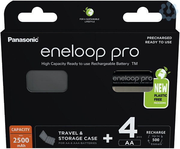 eneloop pro ist ideal für verschiedenste Geräte mit hohem Stromverbrauch, wie z.B. Fotoblitze, Game-Controller, ferngesteuerte Spielzeuge. eneloop pro Akkus können bis zu 500 Mal wieder aufgeladen werden und haben nach 1 Jahr noch 85% Ihrer Kapazität. eneloop ist als starke Alternative für Einwegbatterien bekannt. Alleine der Einsatz von eneloop Akkus anstelle von Einwegbatterien schont Ressourcen und hilft der Umwelt. Des Weiteren werden eneloop Akkus aus Solar-Energie vorgeladen ausgeliefert. eneloop trägt zu einem nachhaltigen Lebensstil bei und hat nun den nächsten wichtigen Schritt zum Umweltschutz vollbracht und die Produktverpackungen zu 100% plastikfrei gestaltet. Durch diese Umsetzung werden nun jährlich 15 Tonnen Plastik eingespart.