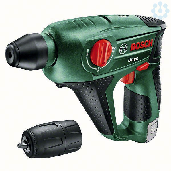Akku-Bohrhammer Uneo. Das vielseitige 3-in-1-Akku-Werkzeug zum Bohren, Hämmern und Schrauben. Pneumatisches Hammerwerk für leichtes und schnelles Bohren, sogar in Beton. SDS-System-Bohrfutter für einen einfachen, intuitiven und zügigen Zubehörwechsel in nur 3 Sekunden. Zweiganggetriebe sorgt je nach Anwendung für eine höhere Drehzahl oder ein höheres Drehmoment, Hämmern, Bohren und Schrauben in Beton, Mauerwerk, Fliesen, Holz und Metall. POWER FOR ALL: ein Akku und ein Ladegerät für ein komplettes Home & Garden Gerätesystem, Betonbohrer Ø 6 und 8 mm, Universalbohrer Ø 5 und 6 mm, 4 lange Bits, Rundschaftadapter, Karton