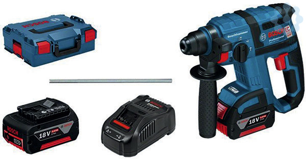 Akku-Bohrhammer mit SDS plus GBH 18 V-EC. Der SDS plus-Akku-Bohrhammer mit optimiertem Verhältnis zwischen Leistung und Gewicht. Zeichnet sich durch ein ausgewogenes Verhältnis zwischen Leistung und Gewicht aus, liefert 1,7 Joule Schlagenergie und wiegt nur 2,6 kg. Das geringe Gewicht und die kompakte Bauform ermöglichen ermüdungsarmes Bohren über Kopf. Zuverlässig durch robuste Komponenten und einen bürstenlosen EC-Motor. Im Lieferumfang enthalten: Zusatzhandgriff (2 602 025 141), Tiefenanschlag 210 mm (1 613 001 010), Schnellladegerät GAL 1880 CV (1 600 A00 B8G), L-BOXX 136 (1 600 A01 2G0), Maschinentuch, 1/1 L-BOXX-Einlage Gerät und Ladegerät (1 600 A00 2WF), 2x Akku GBA 18V 5.0Ah (1 600 A00 2U5)