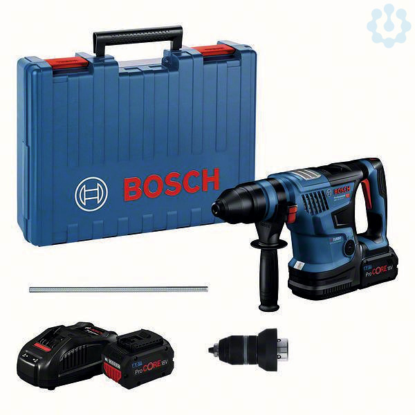 Akku-Bohrhammer BITURBO mit SDS plus GBH 18V-34 CF, 2 x Akku ProCORE18V 8.0Ah (1 600 A01 6GK); Schnellladegerät GAL 1880 CV (1 600 A00 B8G); 1 x Bluetooth Low Energy Modul GCY 42 Professional (1 600 A01 3WF); Handwerkerkoffer (ET-Nr. 1 605 438 1G2); Zusatzhandgriff (2 608 000 703); Tiefenanschlag (ET-Nr. 1 613 001 009); Wechselfutter SDS plus (2 608 000 704); Schnellwechselbohrfutter 1,5 - 13 mm (2 608 000 710); Fetttube (ET-Nr. 1 615 430 010); Maschinentuch (ET-Nr. 1 619 200 413)