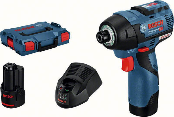 Akku-Drehschlagschrauber GDR 12V-110, L-BOXX 102 (1 600 A01 2FZ); 2 x Akku GBA 12V 3.0Ah (1 600 A00 X79); Schnellladegerät GAL 12V-40 Professional (1 600 A01 9R3); L-BOXX-Einlage Zubehör; L-BOXX-Einlage für Gerät