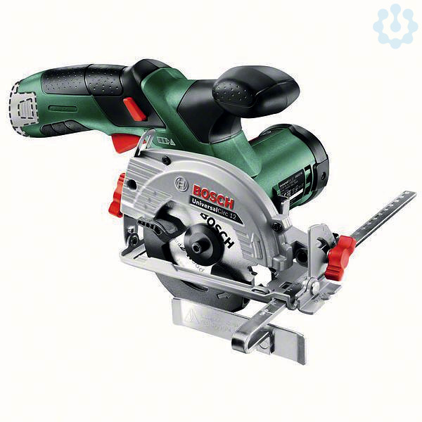 Akku-Kreissäge UniversalCirc 12. Kabellose Freiheit, einfaches Sägen und präzise Geradschnitte. Parallelanschlag bietet Unterstützung bei Geradschnitten in Holzwerkstoffen. Einfache und schnelle Einstellung von Schnitttiefe und Winkel. Verwendung ohne Stromkabel an jeder Arbeitsstätte, auch ohne Zugang zum Netzanschluss. Die PowerLight-LED beleuchtet den Schnittbereich für eine bessere Sicht auch an dunkleren Stellen. Syneon Technology steuert den Energieverbrauch für optimale Effizienz und längere Laufzeit. POWER FOR ALL: Ein Akku und ein Ladegerät für das komplette Home & Garden-Gerätesystem. Im Lieferumfang enthalten: Kreissägeblatt Optiline Wood (2 608 643 071), Parallelanschlag, Adapter für Staubsauger, Karton