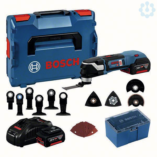 Akku-Multi-Cutter GOP 18V-28, Das Akku-Multifunktionswerkzeug GOP 18V-28 Professional ist der leistungsstarke Akku-Allrounder in der Bosch StarlockPlus-Klasse. Seine einzigartige Starlock-Schnittstelle mit einer optimierten dreidimensionalen Kraftschlussverbindung zwischen Maschine und Zubehör sorgt für eine größtmögliche Kraftübertragung und damit für einen schnelleren Arbeitsfortschritt. Das Multifunktionswerkzeug verfügt außerdem über ein LED-Licht zur Beleuchtung von Arbeitsbereichen und Schaffung optimaler Sichtverhältnisse auch bei Dunkelheit. Darüber hinaus ermöglicht die Snap-In-Funktion einen schnellen und einfachen Werkzeugwechsel. Dieses Elektrowerkzeug eignet sich für die Möbel- oder Bootsrenovierung sowie für die Rohr- und Nagelbearbeitung. Es kann für Holz, Plastik und Metall eingesetzt werden. Es ist kompatibel mit dem Starlock- und Starlock Plus-System. Kompatibel mit dem Bosch Professional 18V System und mit der markenübergreifenden AMPShare Akku Allianz. Ferner verfügt der GOP 18V-28 Professional über Funktionen wie konstante Drehzahl, Softgrip und Drehzahlvorwahl. 1 x Starlock BIM Tauchsägeblatt AII 65 APB, Curved-Tec, Wood + Metal (2 608 661 781); 1 x Starlock BIM Tauchsägeblatt AII 65 BSPB, Curved-Tec, Hard Wood (2 608 662 017); 1 x Starlock BIM Tauchsägeblatt AIZ 20 AB, Wood + Metal (2 608 661 640); 1 x Starlock BIM Tauchsägeblatt AIZ 32 APB, Wood + Metal, Curved-Tec (2 608 661 644); 1 x Starlock BIM Segementsägeblatt ACZ 85 EB, Wood + Metal (2 608 661 636); 1 x Starlock Carbide-RIFF Schleifplatte AVZ 78 RT2, Grout + Abrasive (2 608 661 648); 1 x Starlock Carbide-RIFF Segementsägeblatt ACZ 85 RT3, Grout + Abrasive (2 608 661 642); 1 x Starlock Deltaschleifplatte AVZ 93 G (2 608 000 493); 1 x StarlockPlus BIM Tauchsägeblatt PAII 65 APB, Curved-Tec, Wood + Metal (2 608 662 564); 1 x StarlockPlus BIM Tauchsägeblatt PAIZ 32 APB, Curved-Tec, Wood + Metal (2 608 662 558); 1 x StarlockPlus Carbide Tauchsägeblatt PAIZ 32 AT, Metal (2 608 662 555); 5 x Schleifblätter, K 2x80, 2x120, 1x240 (2 608 621 104); L-BOXX 136 (1 600 A01 2G0); Schnellladegerät GAL 1880 CV (1 600 A00 B8G); 2 x Akku GBA 18V 5.0Ah (1 600 A00 2U5)