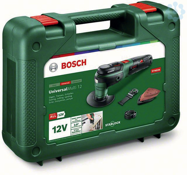 Akku-Multifunktionswerkzeug UniversalMulti 12, Vielseitige, kabelfreie Lösung für verschiedenste DIY-Arbeiten, Leistungsstarker Motor mit elektronischer Drehzahlvorwahl, Bosch AutoClic-System ermöglicht schlüssellosen Zubehörwechsel innerhalb von 3 Sekunden, Es ist umfangreiches Starlock-Zubehör für vielfältige Anwendungen erhältlich, Integrierte LED für die Beleuchtung des Arbeitsbereichs, Schneiden, Sägen, Schleifen, Schaben, Fräsen, Raspeln und Polieren verschiedenster Materialien, POWER FOR ALL: Ein Akku und ein Ladegerät für das komplette Home & Garden-Gerätesystem, Syneon Technology steuert den Energieverbrauch für optimale Effizienz und längere Laufzeit, 1 x Akku PBA 12V 2.0Ah, ACZ 85 EB (2 609 256 943), AIZ 32 EPC (2 609 256 947), Deltaschleifplatte 93 mm, AVZ 93 G (2 609 256 956), Deltaschleifblatt-Set (2 609 256 A54), 4-stufiger Tiefenanschlag für Segmentsägeblätter (2 609 256 C61), Ladegerät GAL 12V-20, Koffer