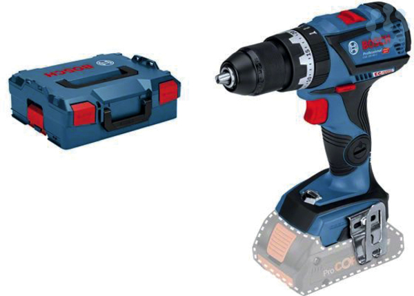 Akku-Schlagbohrschrauber GSB 18V-60 C, Der kompakte Akku-Schlagbohrschrauber GSB 18V-60 C Professional mit bürstenlosem Motor und Schlagbohrfunktion hat das beste Verhältnis zwischen Leistung und Größe in der 18-Volt-Klasse von Bosch. Mit einem harten Drehmoment von 60 Nm und einer Kopflänge von 174 mm bietet der Bohrschrauber die ideale Kombination aus Leistung und geringer Größe. Während die Präzisionskupplung dem Anwender bequemes Arbeiten ermöglicht, erhöht KickBack Control den Anwenderschutz für mehr Sicherheit und perfekte Kontrolle bei der Arbeit. Der Bohrschrauber ist mit der Bluetooth Connectivity Option ausgestattet und lässt sich für zusätzliche Werkzeugkontrolle direkt an ein Smartphone anschließen. Die Schlagbohrfunktion dieses Elektrowerkzeugs wurde zum Bohren in Holz mit einem maximalen Durchmesser von 38 mm, in Stahl bis 13 mm und in Mauerwerk bis 10 mm konzipiert. Außerdem eignet es sich für Schraubdurchmesser bis 10 mm. Kompatibel mit allen Bosch Professional 18-Volt-Akkus und -Ladegeräten (Professional 18V System). Der GSB 18V-60 C Professional verfügt außerdem über 2 Gänge, Autolock, Gürtelclip/-haken, Electronic Motor Protection, einen Lithium-Ionen-Akku und Vollmetallbohrfutter. 1/2 L-BOXX-Einlage für Gerät und Ladegerät (1 600 A00 2WA, 1 600 A00 2WC); L-BOXX 136 (1 600 A01 2G0)