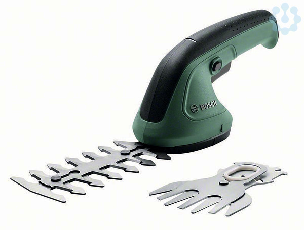 Akku-Strauch- und -Grasscheren-Set EasyShear. Einfaches, leichtes Schneiden sowohl von Sträuchern als auch von Rasenkanten. 2-in-1 für den Strauch- und Rasenschnitt. Werkzeugloser Messerwechsel für mühelosen Zubehörtausch. Kabellose Freiheit für umfassende Manövrierbarkeit im Garten. Das geringe Gewicht von 530 g und das kompakte Design ermöglichen eine einfache Lagerung und eine sofortige Einsatzbereitschaft. Integrierter 3,6V-Li-Ion-Akku für optimale Leistung. Im Lieferumfang enthalten: Micro-USB-Kabel (1 607 000 CG9), Strauchmesser, 120 mm (F 016 800 588), Grasmesser, 100 mm (F 016 800 589)