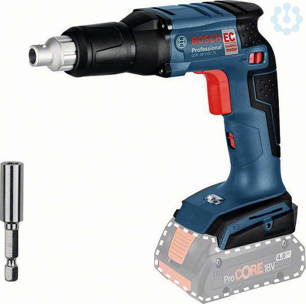 Akku-Trockenbauschrauber GSR 18V-EC TE, Der GSR 18V-EC TE Professional ist der leistungsstärkste Bosch Akku-Trockenbauschrauber im 18-Volt-Segment. Sein extrem leistungsstarker und kompakter 18-Volt-Antriebsstrang ermöglicht das Befestigen von bis zu 3.400 Schrauben pro Akkuladung (4,0 Ah) auch in beengten Arbeitsbereichen. Er zeichnet sich durch ein kompaktes und leichtes Design mit 1,6 kg Gewicht und einer Akkukapazität von 4,0 Ah aus und verfügt über eine komfortable Handhabung. Für eine lange Lebensdauer wurde dieser Trockenbauschrauber mit der bürstenlosen Bosch Motortechnologie mit Electronic Motor Protection und Motorbremse ausgestattet. Dieses Elektrowerkzeug ist für die Befestigung von Trockenbauschrauben in weichen Materialien für Unterkonstruktionen wie Holz und Metall vorgesehen. Ist kompatibel mit allen Bosch Professional 18V-Akkus und -Ladegeräten (Professional 18V System) und mit dem MA 55 Professional Magazinaufsatz für Bosch Trockenbauschrauber. Der GSR 18V-EC TE Professional verfügt über die bürstenlose Bosch Motortechnologie mit Electronic Motor Protection und Motorbremse. Er besitzt Autolock, Gürtelclip/Haken, einen austauschbaren Tiefenanschlag, Rechts-/Links-Lauf und Drehzahlvorwahl. Karton; 1/1 L-BOXX-Einlage für Gerät (1 600 A00 2WR); Tiefenanschlag (2 600 460 058); Universalhalter magnetisch (2 607 002 584); 1 x Schraubendrehereinsatz (Bit) Ph 2