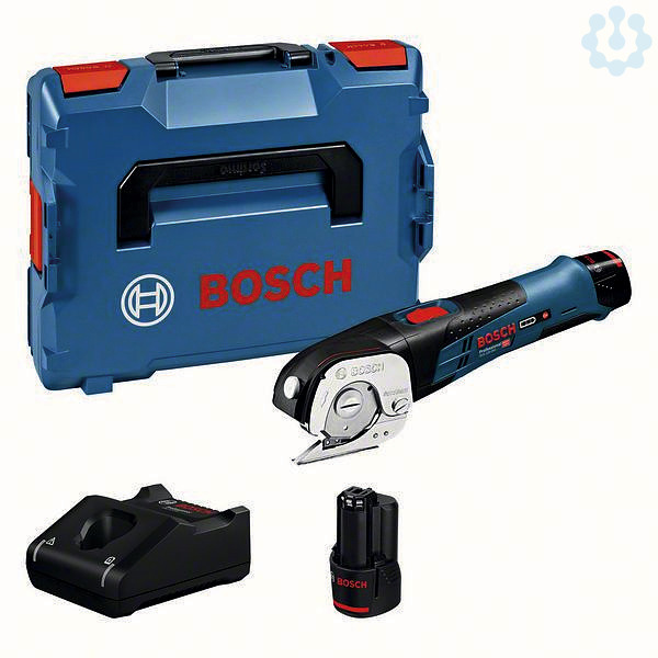 Akku-Universalschere GUS 10,8 V-LI. Die GUS 12V-300 Professional Universalscheren bieten eine schnelle Lösung für professionelle Anwendungen. Die selbstschärfende Multimaterialklinge ermöglicht vielseitige Anwendungen. Darüber hinaus ist ein schneller Arbeitsfortschritt durch die hohe Leerlaufdrehzahl der Scheren und ein gutes Umdrehungsverhältnis in weichen und flexiblen Materialien möglich. Der leistungsstarke Aufbau ermöglicht zudem eine hohe Schnittleistung von bis zu 150 m pro Ah-Akkuladung. Dieses Elektrowerkzeug eignet sich zum Schneiden von PVC, Teppich, Pappe, Leder und Stoffen. Sie ist kompatibel mit allen Bosch Professional 12V-Akkus und -Ladegeräten (Professional 12V System). Die GUS 12V-300 Professional verfügt auch über eine Selbstschärfefunktion und einen Li-Ion-Akku. L-BOXX 102 (1 600 A01 2FZ); Schnellladegerät GAL 12V-40 Professional (1 600 A01 9R3); 1/2 L-BOXX-Einlage für Gerät (1 600 A00 2W3); 1/2 L-BOXX-Einlage für Ladegerät (1 600 A00 2VN); 2 x Akku GBA 12V 2.0Ah (1 600 Z00 02X)