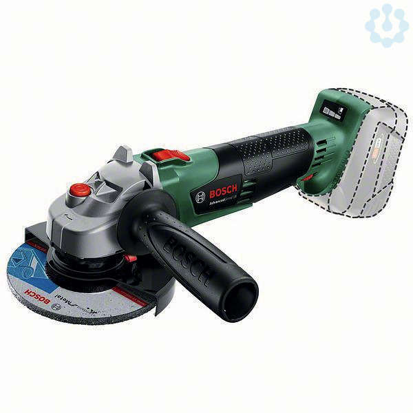 Akku-Winkelschleifer (ohne Akku und Ladegerät) AdvancedGrind 18. Kabellose Freiheit und optimale Handlichkeit für verschiedene DIY-Arbeiten, Ein kraftvoller Motor und elektronische Drehzahlvorwahl sorgen für die perfekte Drehzahl passend zu Arbeit und Material, Sanftanlauf, Bremsfunktion und schnell einstellbare Schutzhaube für reibungsloses Arbeiten, Schneller, leichter und werkzeugloser Scheibenwechsel in weniger als 12 Sekunden, Ideal zum Schleifen, Trennen, Bürsten und Polieren von Metall, Stein, Beton und Fliesen, Kompatibel mit Bosch 18V POWER FOR ALL-Akku, POWER FOR ALL: ein Akku und ein Ladegerät für das komplette Home & Garden-Gerätesystem, Die Syneon Technology steuert den Energieverbrauch für optimale Effizienz und längere Laufzeit, Handgriff (2 602 025 183), Befestigungsflansch (2 605 703 014), Schnellverstellbare Schutzhaube (2 605 510 289), Kartonschachtel
