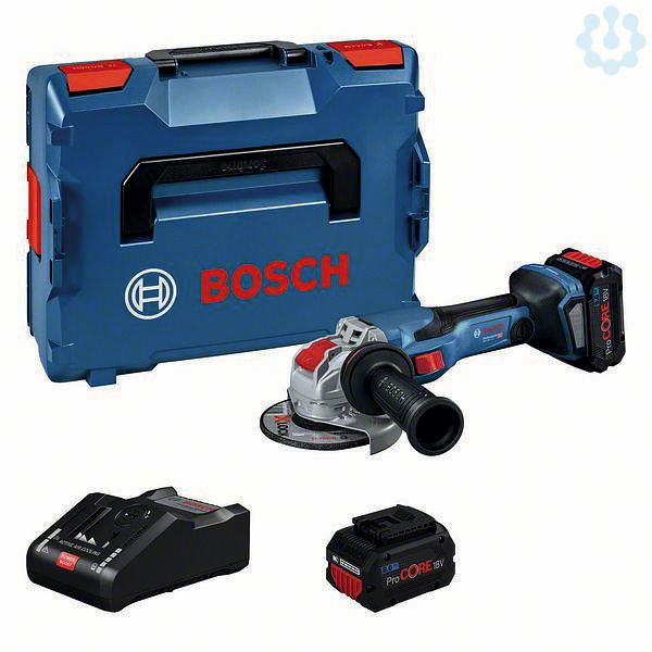 Akku-Winkelschleifer BITURBO mit X-LOCK GWX 18V-15 C, Der GWX 18V-15 C Professional ist der leistungsstarke Akku-Schleifer von Bosch in der 18V-Kategorie mit Leistungskapazität für industrielle Anwendungen. Dank seines starken, umfassend für die ProCORE18V-Akkutechnologie optimierten bürstenlosen Motors stellt er eine Akkuleistung entsprechend der Leistungsstärke eines kabelgebundenen Geräts mit 1.500 W bereit. Dieser kleine Winkelschleifer wird mit einem schlüssellosen X-LOCK Klick-System ausgeliefert, das einen schnellen und bequemen Zubehörwechsel ermöglicht. Für größtmöglichen Komfort sorgt ein Bluetooth Connectivity-Modul dafür, dass individuelle Drehzahleinstellungen vorgenommen werden können. Dank X-LOCK, KickBack Control, Drop Control und dem intelligenten schnellen -ZollX-Brake-Zoll System bietet der Schleifer eine umfassende Werkzeugführung, während über sein User Interface ein Aktivwerkzeug-Feedback möglich ist. Ist geeignet zum Abschleifen und Trennen von Metall. Ist kompatibel mit allen Bosch Professional 18V-Akkus und -Ladegeräten (Professional 18V System) – maximale Leistung mit ProCORE18V = 5,5 Ah – sowie mit den Staubabsaugvorrichtungen GDE 115/125 FC-T Professional und GDE 125 EA-T Professional. Der GWX 18V-15 C Professional zeichnet sich zudem durch konstante Drehzahl, Überlastschutz, eine schlüssellose Schutzhaube, Wiederanlaufschutz, Sanftanlauf und Vibration Control aus. 2 x Akku ProCORE18V 8.0Ah (1 600 A01 6GK); Schnellladegerät GAL 18V-160 C Professional inkl. Bluetooth Low Energy Modul (1 600 A01 9S6); Schutzhaube (1 605 510 365); Zusatzhandgriff Vibration Control (2 602 025 171); 1/1 L-BOXX-Einlage für Gerät und Ladegerät (1 600 A01 166); L-BOXX 136 (1 600 A01 2G0)