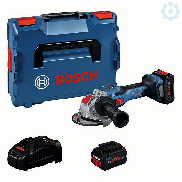 Akku-Winkelschleifer BITURBO mit X-LOCK GWX 18V-15 C, Der GWX 18V-15 SC Professional ist der leistungsstarke Akku-Schleifer von Bosch in der 18V-Kategorie mit Leistungskapazität für industrielle Anwendungen. Dank seines starken, umfassend für die ProCORE18V-Akkutechnologie optimierten bürstenlosen Motors stellt er eine Akkuleistung entsprechend der Leistungsstärke eines kabelgebundenen Geräts mit 1.500 W bereit. Dieser kleine Winkelschleifer wird mit einem schlüssellosen X-LOCK-Klicksystem ausgeliefert, das einen schnellen und bequemen Zubehörwechsel ermöglicht. Das Werkzeug kann mit einem optionalen Bluetooth Connectivity-Modul nachgerüstet werden. Ausgestattet mit KickBack Control, Drop Control, dem intelligenten schnellen -ZollX-Brake-Zoll System und einer werkzeuglosen Schnellspannmutter bietet dieser Schleifer eine umfassende Werkzeugführung. Ist geeignet zum Abschleifen und Trennen von Metall. Ist kompatibel mit allen Bosch Professional 18V-Akkus und -Ladegeräten (Professional 18V System) – maximale Leistung mit ProCORE18V = 5,5 Ah – sowie mit den Staubabsaugvorrichtungen GDE 115/125 FC-T Professional und GDE 125 EA-T Professional. Der GWX 18V-15 SC Professional zeichnet sich zudem durch konstante Drehzahl, Überlastschutz, eine schlüssellose Schutzhaube, Wiederanlaufschutz, Sanftanlauf und Vibration Control aus. 2 x Akku ProCORE18V 5.5Ah (1 600 A02 149); Schnellladegerät GAL 1880 CV Professional (2 607 225 921); L-BOXX 136 (1 600 A01 2G0); Schutzhaube (1 605 510 365); Zusatzhandgriff Vibration Control (2 602 025 171); 1 x Bluetooth Low Energy Modul GCY 42 Professional (1 600 A01 3WF)
