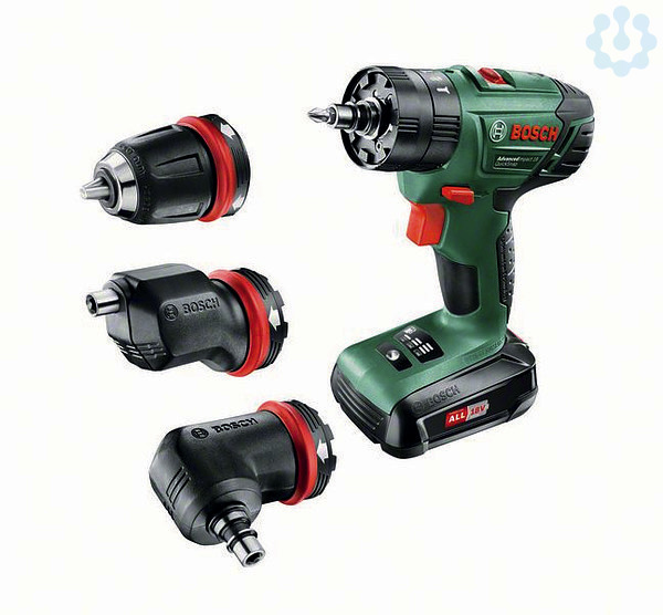 Akku-Zweigang-Schlagbohrschrauber AdvancedImpact 18 QuickSnap. Die Allround-Lösung zum Schrauben und Bohren. Maximale Flexibilität und präzises Arbeiten an schwer zugänglichen Stellen. 18-Volt-Schlagbohrschrauber mit drei verschiedenen Aufsätzen: Bohrfutter-, Exzenter- und Winkelaufsatz. Besonders einfacher Aufsatzwechsel dank QuickSnap-Schnittstelle. Bohren und Schlagbohren mit dem Bohrfutteraufsatz. Um die Ecke schrauben mit dem Winkelaufsatz. Randnahes Schrauben bis 10 mm an die Kante mit dem Exzenteraufsatz. Ein Akku für alle – passend für alle Heimwerker- und Gartengeräte des POWER FOR ALL 18-Volt-Systems, 1 x Akku PBA 18V 1.5Ah, Aufnahmeschaft für Bohrfutter, Winkelaufsatz, Exzenteraufsatz, Doppelschrauberbit, Ladegerät AL 1815 CV, Karton