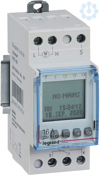 Legrand AlphaRex³ DY21 BLE, digitale Astrozeitschaltuhr inkl. Jahres- und Wochenzeitschaltuhr, 1 Kanal, 84 Schaltprogramme, Betriebsspannung 230 V 50/60 Hz, mit Steuereingang, Programmerstellung direkt am Gerät oder per App Time Switch von Legrand direkt über Bluetooth programmierbar. Datenschlüsselaufnahme entfällt. Astrofunktion (Sonnenunter/-aufgänge) kombinierbar mit Schaltuhrfunktion. Dauer EIN/AUS, Zufallsprogramm, Zyklusfunktion, 1 Std.-Test, PIN-Code Sperre, Betriebsstundenzähler, Hintergrundbeleuchtung, automatische Sommer-/Winterzeitumstellung, 5 Jahre Gangreserve, Ganggenauigkeit +/- 0,1 Sek/Tag, Kürzeste Schaltzeit: 1 Sek., Nulldurchgangsschaltung. Schaltausgang: 1 Wechsler.
