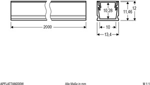 Alu-Profil mit Abdeckung, 200cm - U Abdeckung: Polycarbonat, opal - Transmis