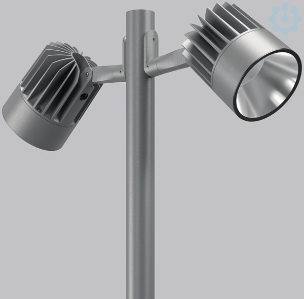 Präzise einstellbare LED Außenstrahler für die Mastansatz- und -aufsatzmontage im Set (2 Stück). Gehäuse aus korrosionsbeständigem Aluminium-Druckguss mit Auslegerarm, seewasserbeständig pulverbeschichtet. Drehwinkel: 318° in 6°-Schritten, Anstellwinkel 90° in 5°-Schritten mit Winkelskala einstell- und verriegelbar. Serienmäßig mit Membranventil zur Kondenswasservermeidung. Rotationssymmetrischer Reflektor aus reflexverstärktem MIRO-SILVER®. Abdeckung Einscheiben-Sicherheitsglas (ESG) klar. Lichtverteilung: Flood, breitstrahlend. Fixierung am Mast über 2 Bohrungen ø 28 mm (bauseits). Strahler mit 8 m Anschlusskabel. Thermisch entkoppelte Betriebsgeräteeinheit ist extern bauseits im Mast zu integrieren. Mit Steckklemme 2 x max. 2,5 mm² für Netzleitung max. ø 12 mm.