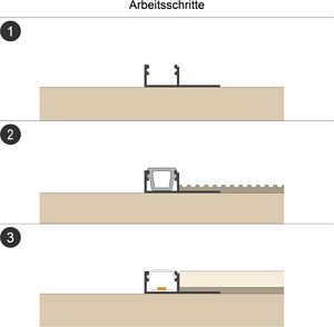 Das Fliesenprofil aus Aluminium ist geeignet für Fliesen bis zu einer Stärke von 8mm. Der gestanzte Flügel des Profils sorgen in Verbindung mit dem Fliesenkleber für sicheren Halt. Die Lieferung erfolgt inkl. opaler Abdeckung. Geeignet für LED-Strips bis 14mm Breit und einer Leistung von max. 15W je Meter. Für optimale Ergebnisse sollte bei der Montage der optional erhältliche Schutzschlauch verwendet werden. Technische Daten: Profil: Aluminium eloxiert, Abdeckung: Polycarbonat, Transmissionsgrad: ca. 65%