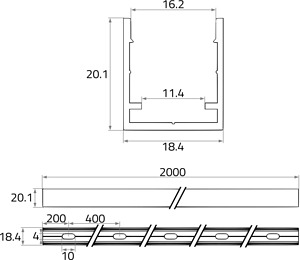 Aluprofil für die VARDAflex Osmium SVQ/TVQ Serie LxBxH in mm: 2.000 x 18,4 x 20,1 Material: Aluminium eloxiert Farbe: Silbergrau