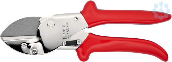 94 55 200 Amboss-Schere Ziehender Schnitt gegen feste Unterlage zum quetschfreien Schneiden von weichen Materialien wie z. B. Gummi-Profile, PVC, Leder, Holz, Schläuche, usw.. Schneidet Flachmaterial bis max. 40 mm Breite und 7,5 mm Höhe. Schneidkapazität für Rundmaterial bis Ø 25 mm. Robuste, auswechselbare Klinge. Mit Öffnungsfeder und Sperrklinke. - Klingenlänge: 40,0mm