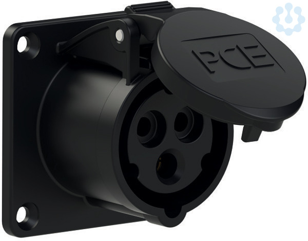 CEE-Anbausteckdose gerade (70x70mm) 16A 3p 6h IP44/IP54 TT schwarz; Gehäusematerial: PA6; Nennstrom: 16A; Polzahl: 3 (2P+PE); Uhrzeit-Stellung: 6h; Nennspannung/Frequenz: 200-250V~ / 50+60Hz; Kontakte: Messing; Anschlusstechnik: schraublose Anschlusstechnik (TT); Abmessungen (Flansch/Bohrung): 70x70 mm / 56x56 mm; Schutzart: IP44/IP54