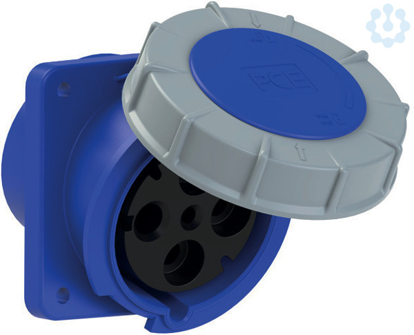 CEE-Anbausteckdose schräg (114x114) 125A 4p 9h IP67 POWER TWIST; Gehäusematerial: PA6; Nennstrom: 125A; Polzahl: 4 (3P+PE); Uhrzeit-Stellung: 9h; Nennspannung/Frequenz: 200-250V~ / 50+60Hz; Kontakte: Messing, mit Lamellenkontakt (CuBe); Anschlusstechnik: Rahmenklemmen mit Schrauben; Abmessungen (Flansch/Bohrung): 114x114 mm / 90x90 mm; Schutzart: IP66/IP67