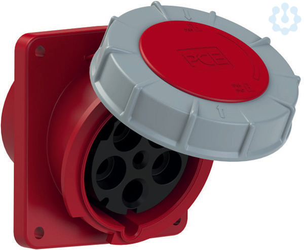 CEE-Anbausteckdose schräg (120x130) 125A 5p 6h IP67 POWER TWIST; Gehäusematerial: PA6; Nennstrom: 125A; Polzahl: 5 (3P+N+PE); Uhrzeit-Stellung: 6h; Nennspannung/Frequenz: 200/346V~ - 240/415V~ / 50+60Hz; Kontakte: Messing, mit Lamellenkontakt (CuBe); Anschlusstechnik: Rahmenklemmen mit Schrauben; Abmessungen (Flansch/Bohrung): 120x130 mm / 100x108 mm; Schutzart: IP66/IP67