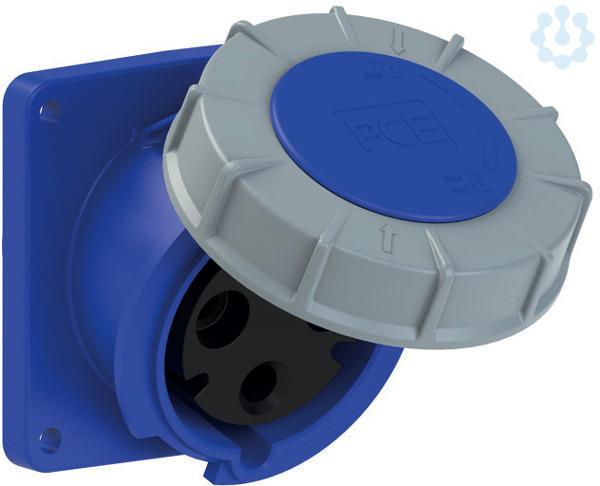 CEE-Anbausteckdose schräg (106x110) 63A 3p 6h IP67 POWER TWIST; Gehäusematerial: PA6; Nennstrom: 63A; Polzahl: 3 (2P+PE); Uhrzeit-Stellung: 6h; Nennspannung/Frequenz: 200-250V~ / 50+60Hz; Kontakte: Messing, mit Lamellenkontakt (CuBe); Anschlusstechnik: Rahmenklemmen mit Schrauben; Abmessungen (Flansch/Bohrung): 106x110 mm / 90x90 mm; Schutzart: IP66/IP67