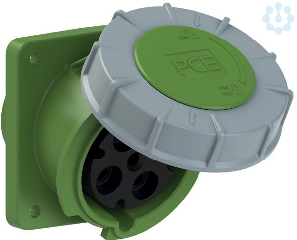CEE-Anbausteckdose schräg (100x107) 63A 4p 2h IP67 POWER TWIST; Gehäusematerial: PA6; Nennstrom: 63A; Polzahl: 4 (3P+PE); Uhrzeit-Stellung: 2h; Nennspannung/Frequenz: >50V~ / 300-500Hz; Kontakte: Messing, mit Lamellenkontakt (CuBe); Anschlusstechnik: Rahmenklemmen mit Schrauben; Abmessungen (Flansch/Bohrung): 100x107 mm / 77x85 mm; Schutzart: IP66/IP67