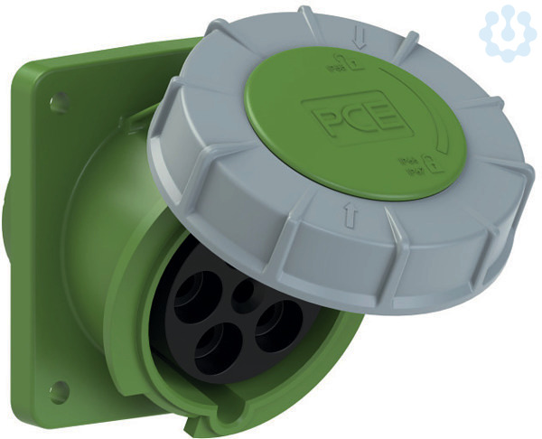 CEE-Anbausteckdose schräg (100x112) 63A 5p 2h IP67 POWER TWIST; Gehäusematerial: PA6; Nennstrom: 63A; Polzahl: 5 (3P+N+PE); Uhrzeit-Stellung: 2h; Nennspannung/Frequenz: >50V~ / 300-500Hz; Kontakte: Messing, mit Lamellenkontakt (CuBe); Anschlusstechnik: Rahmenklemmen mit Schrauben; Abmessungen (Flansch/Bohrung): 100x112 mm / 80x88 mm; Schutzart: IP66/IP67