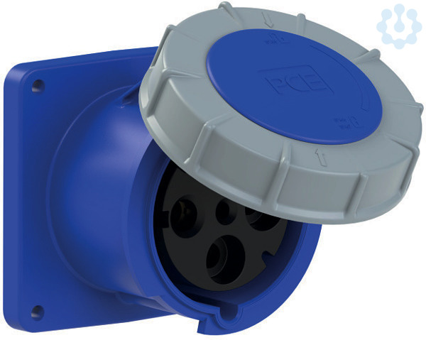 CEE-Anbausteckdose gerade (120x120) 125A 4p 9h IP67 POWER TWIST; Gehäusematerial: PA6; Nennstrom: 125A; Polzahl: 4 (3P+PE); Uhrzeit-Stellung: 9h; Nennspannung/Frequenz: 200-250V~ / 50+60Hz; Kontakte: Messing, mit Lamellenkontakt (CuBe); Anschlusstechnik: Rahmenklemmen mit Schrauben; Abmessungen (Flansch/Bohrung): 120x120 mm / 100x100 mm; Schutzart: IP66/IP67