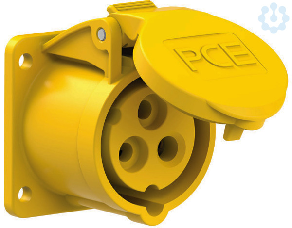 CEE-Anbausteckdose gerade (54x60mm) 16A 3p 4h IP44/IP54; Gehäusematerial: PA6; Nennstrom: 16A; Polzahl: 3 (2P+PE); Uhrzeit-Stellung: 4h; Nennspannung/Frequenz: 100-130V~ / 50+60Hz; Kontakte: Messing; Anschlusstechnik: Schraubklemmen; Abmessungen (Flansch/Bohrung): 54x60 mm / 44x44 mm; Schutzart: IP44/IP54