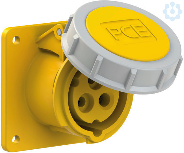 CEE-Anbausteckdose gerade (75x75mm) 16A 3p 4h IP67; Gehäusematerial: PA6; Nennstrom: 16A; Polzahl: 3 (2P+PE); Uhrzeit-Stellung: 4h; Nennspannung/Frequenz: 100-130V~ / 50+60Hz; Kontakte: Messing; Anschlusstechnik: Schraubklemmen; Abmessungen (Flansch/Bohrung): 75x75 mm / 60x60 mm; Schutzart: IP67