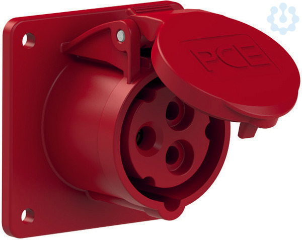 CEE-Anbausteckdose gerade (75x75mm) 16A 3p 9h IP44/IP54; Gehäusematerial: PA6; Nennstrom: 16A; Polzahl: 3 (2P+PE); Uhrzeit-Stellung: 9h; Nennspannung/Frequenz: 380-415V~ / 50+60Hz; Kontakte: Messing; Anschlusstechnik: Schraubklemmen; Abmessungen (Flansch/Bohrung): 75x75 mm / 60x60 mm; Schutzart: IP44/IP54