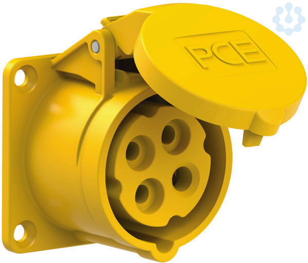 CEE-Anbausteckdose gerade (65x65mm) 16A 4p 4h IP44/IP54; Gehäusematerial: PA6; Nennstrom: 16A; Polzahl: 4 (3P+PE); Uhrzeit-Stellung: 4h; Nennspannung/Frequenz: 100-130V~ / 50+60Hz; Kontakte: Messing; Anschlusstechnik: Schraubklemmen; Abmessungen (Flansch/Bohrung): 65x65 mm / 52x52 mm; Schutzart: IP44/IP54