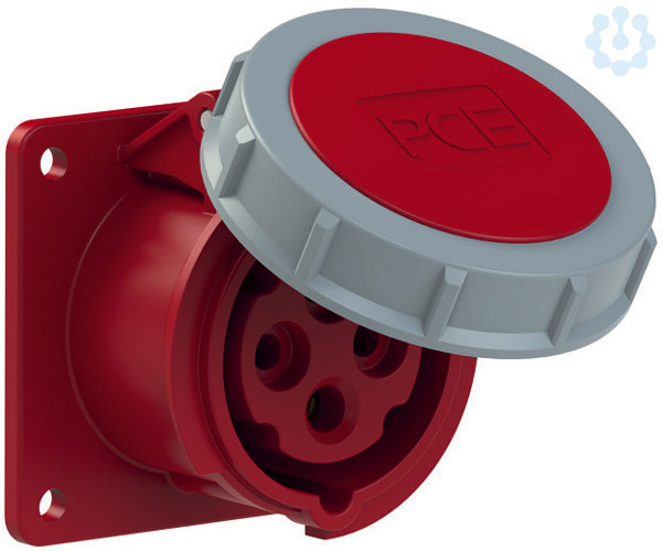 CEE-Anbausteckdose gerade (75x75mm) 16A 4p 6h IP67 TT; Gehäusematerial: PA6; Nennstrom: 16A; Polzahl: 4 (3P+PE); Uhrzeit-Stellung: 6h; Nennspannung/Frequenz: 380-415V~ / 50+60Hz; Kontakte: Messing; Anschlusstechnik: schraublose Anschlusstechnik (TT); Abmessungen (Flansch/Bohrung): 75x75 mm / 60x60 mm; Schutzart: IP67