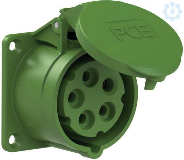 CEE-Anbausteckdose gerade (70x70mm) 16A 5p 2h IP44/IP54; Gehäusematerial: PA6; Nennstrom: 16A; Polzahl: 5 (3P+N+PE); Uhrzeit-Stellung: 2h; Nennspannung/Frequenz: >50V~ / 300-500Hz; Kontakte: Messing; Anschlusstechnik: Schraubklemmen; Abmessungen (Flansch/Bohrung): 70x70 mm / 56x56 mm; Schutzart: IP44/IP54