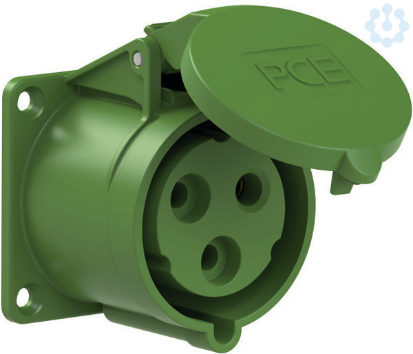 CEE-Anbausteckdose gerade (70x70mm) 32A 3p 2h IP44/IP54; Gehäusematerial: PA6; Nennstrom: 32A; Polzahl: 3 (2P+PE); Uhrzeit-Stellung: 2h; Nennspannung/Frequenz: >50V~ / 300-500Hz; Kontakte: Messing; Anschlusstechnik: Schraubklemmen; Abmessungen (Flansch/Bohrung): 70x70 mm / 56x56 mm; Schutzart: IP44/IP54