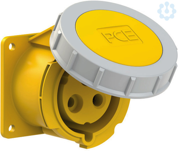 CEE-Anbausteckdose gerade (75x75mm) 32A 3p 4h IP67; Gehäusematerial: PA6; Nennstrom: 32A; Polzahl: 3 (2P+PE); Uhrzeit-Stellung: 4h; Nennspannung/Frequenz: 100-130V~ / 50+60Hz; Kontakte: Messing; Anschlusstechnik: Schraubklemmen; Abmessungen (Flansch/Bohrung): 75x75 mm / 60x60 mm; Schutzart: IP67
