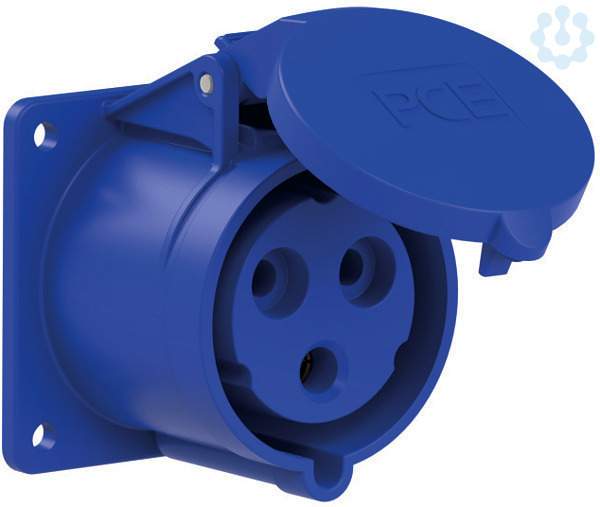 CEE-Anbausteckdose gerade (75x75mm) 32A 3p 6h IP44/IP54 TT; Gehäusematerial: PA6; Nennstrom: 32A; Polzahl: 3 (2P+PE); Uhrzeit-Stellung: 6h; Nennspannung/Frequenz: 200-250V~ / 50+60Hz; Kontakte: Messing; Anschlusstechnik: schraublose Anschlusstechnik (TT); Abmessungen (Flansch/Bohrung): 75x75 mm / 60x60 mm; Schutzart: IP44/IP54