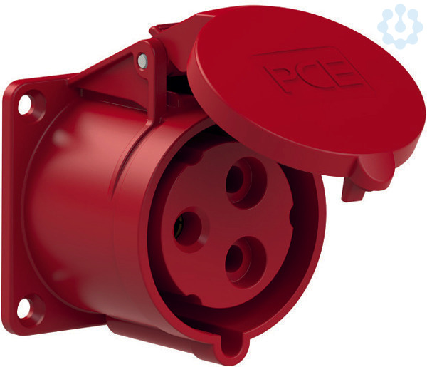 CEE-Anbausteckdose gerade (70x70mm) 32A 3p 9h IP44/IP54 TT; Gehäusematerial: PA6; Nennstrom: 32A; Polzahl: 3 (2P+PE); Uhrzeit-Stellung: 9h; Nennspannung/Frequenz: 380-415V~ / 50+60Hz; Kontakte: Messing; Anschlusstechnik: schraublose Anschlusstechnik (TT); Abmessungen (Flansch/Bohrung): 70x70 mm / 56x56 mm; Schutzart: IP44/IP54