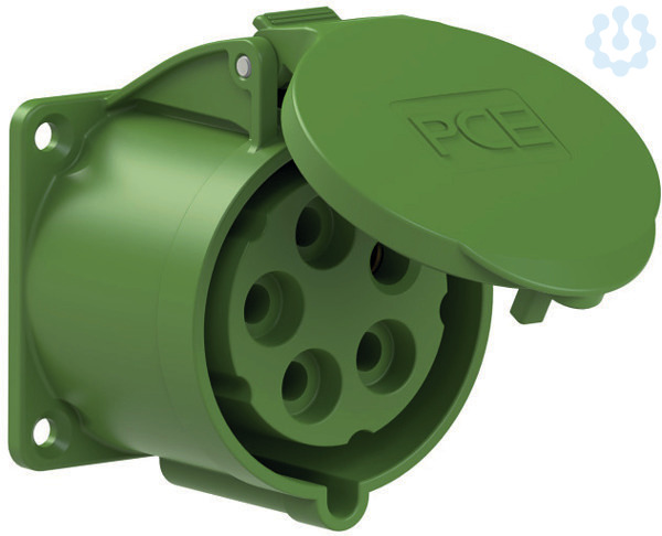 CEE-Anbausteckdose gerade (70x70mm) 32A 5p 2h IP44/IP54; Gehäusematerial: PA6; Nennstrom: 32A; Polzahl: 5 (3P+N+PE); Uhrzeit-Stellung: 2h; Nennspannung/Frequenz: >50V~ / 300-500Hz; Kontakte: Messing; Anschlusstechnik: Schraubklemmen; Abmessungen (Flansch/Bohrung): 70x70 mm / 56x56 mm; Schutzart: IP44/IP54