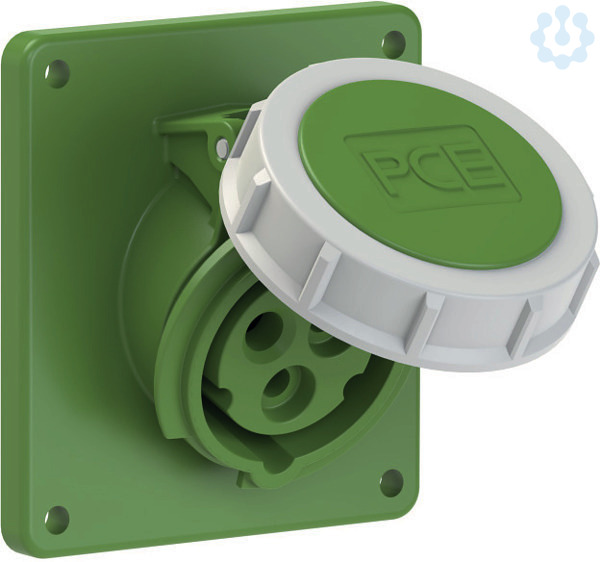 CEE-Anbausteckdose schräg (92x100mm) 16A 3p 10h IP67; Gehäusematerial: PA6; Nennstrom: 16A; Polzahl: 3 (2P+PE); Uhrzeit-Stellung: 10h; Nennspannung/Frequenz: >50V~ / 100-300Hz; Kontakte: Messing; Anschlusstechnik: Schraubklemmen; Abmessungen (Flansch/Bohrung): 92x100 mm / 77x85 mm; Schutzart: IP67