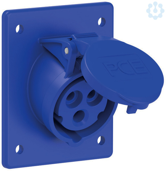 CEE-Anbausteckdose schräg (80x97mm) 16A 3p 6h IP44/IP54; Gehäusematerial: PA6; Nennstrom: 16A; Polzahl: 3 (2P+PE); Uhrzeit-Stellung: 6h; Nennspannung/Frequenz: 200-250V~ / 50+60Hz; Kontakte: Messing; Anschlusstechnik: Schraubklemmen; Abmessungen (Flansch/Bohrung): 80x97 mm / 60x73 mm; Schutzart: IP44/IP54
