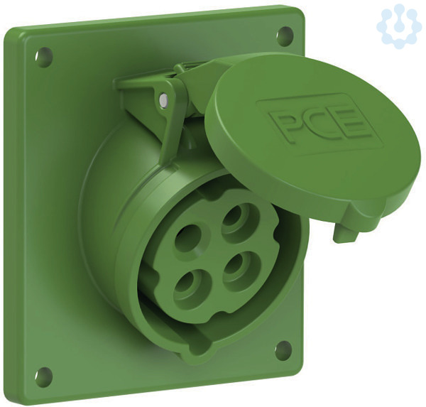 CEE-Anbausteckdose schräg (92x100mm) 16A 4p 10h IP44/IP54; Gehäusematerial: PA6; Nennstrom: 16A; Polzahl: 4 (3P+PE); Uhrzeit-Stellung: 10h; Nennspannung/Frequenz: >50V~ / 100-300Hz; Kontakte: Messing; Anschlusstechnik: Schraubklemmen; Abmessungen (Flansch/Bohrung): 92x100 mm / 77x85 mm; Schutzart: IP44/IP54