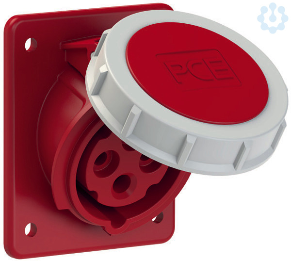 CEE-Anbausteckdose schräg (80x97mm) 16A 4p 6h IP67; Gehäusematerial: PA6; Nennstrom: 16A; Polzahl: 4 (3P+PE); Uhrzeit-Stellung: 6h; Nennspannung/Frequenz: 380-415V~ / 50+60Hz; Kontakte: Messing; Anschlusstechnik: Schraubklemmen; Abmessungen (Flansch/Bohrung): 80x97 mm / 60x73 mm; Schutzart: IP67